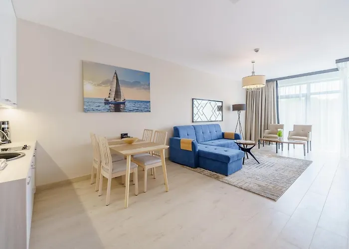 ベッドルーム1室のApartament Z Aneksem Kuchennym I Basenem 426 Diune Hotel Resort コウォブジェクはMarinGoから徒歩で5分以内の場所に位置し、庭園の景色を見渡せます。 コウォブジェク ピアから2.5kmの距離のこの54m²のアパートに、屋内プール、サウナ、サウナ と屋内プールがあります。